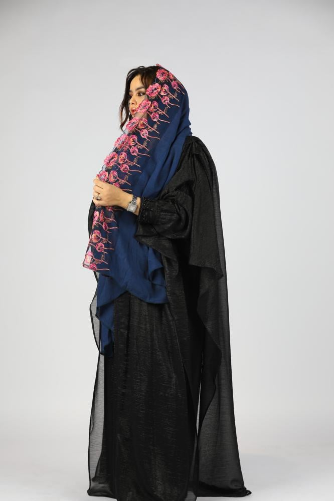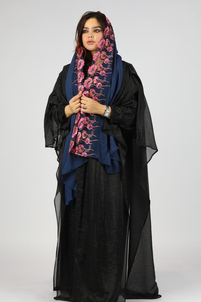 طرحة بتطريز ورود ازرق